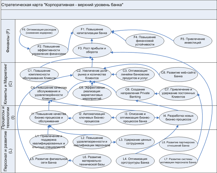 Рис. 1. Стратегическая карта банка (верхний уровень)