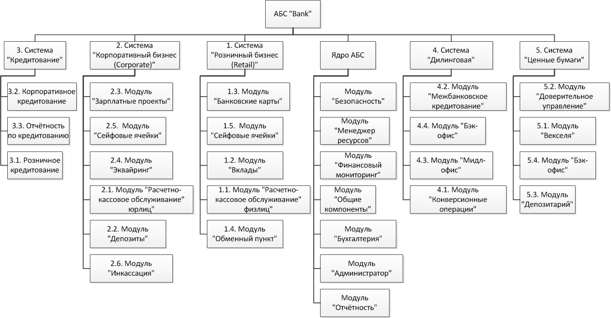 Рис. 3. Дерево бизнес-процессов банка (детализация)