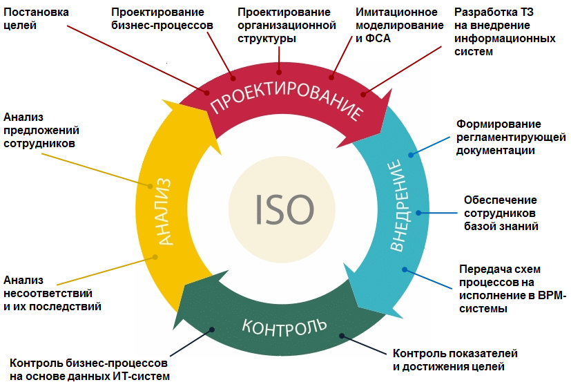 - оптимизация бизнес-процессов, построение системы менеджмента качества, оптимизация организационной структуры и численности персонала, разработка новых продуктов (услуг) и т. д.;