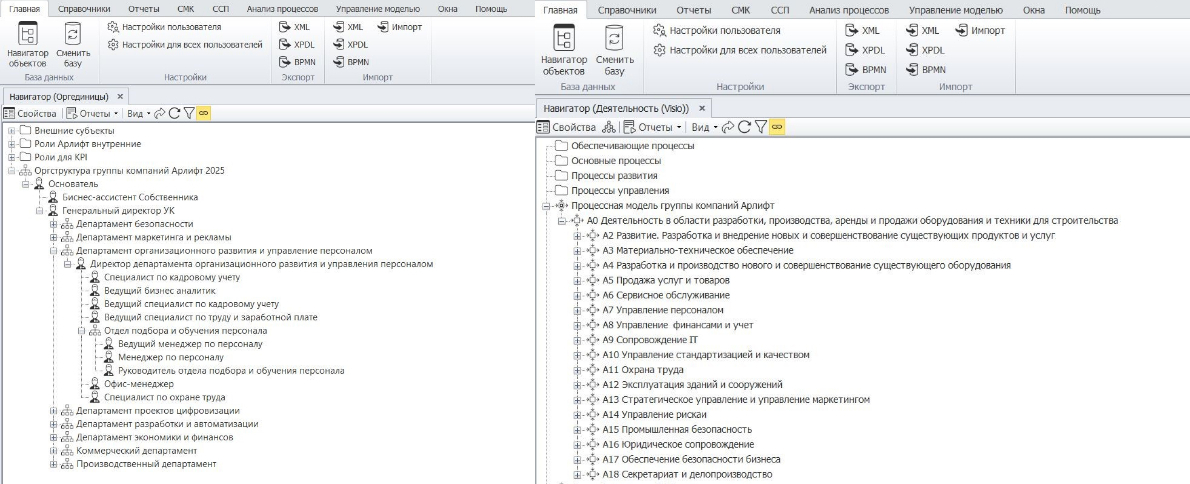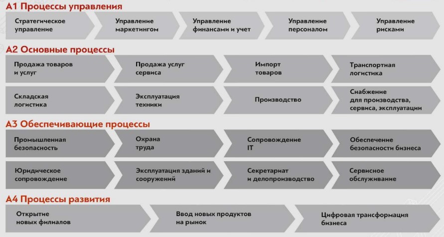 Архитектура бизнес-процессов ARLIFT включает более 200 процессов и делится на 4 группы: