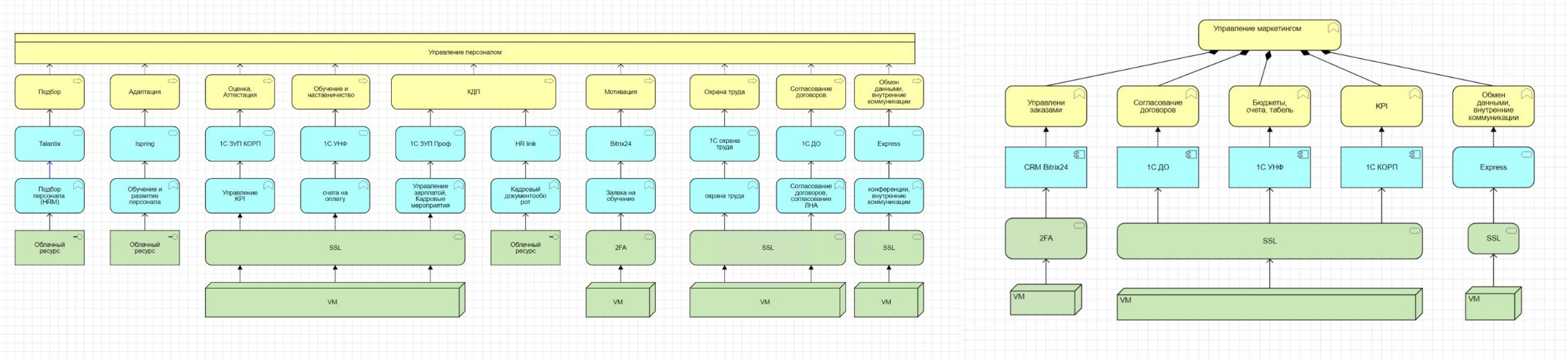 С ростом компании у нас появилось большое количество различных IT-сервисов. В связи с этим мы начали использовать язык моделирования Archimate. Он позволяет видеть всю архитектуру наших IT-систем в связке с бизнес-процессами, стратегическими целями и базами данных. Это помогает экономить на дублировании IT-систем в разных подразделениях, а также упростить адаптацию новых сотрудников.