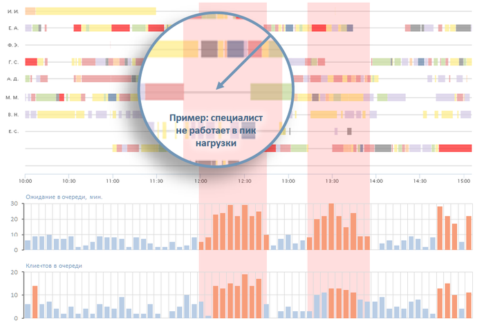 Фотография рабочего дня сотрудника для определения пиковых нагрузок и распределения функционала между сотрудниками точки сети.