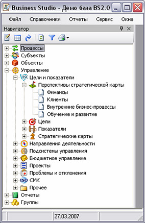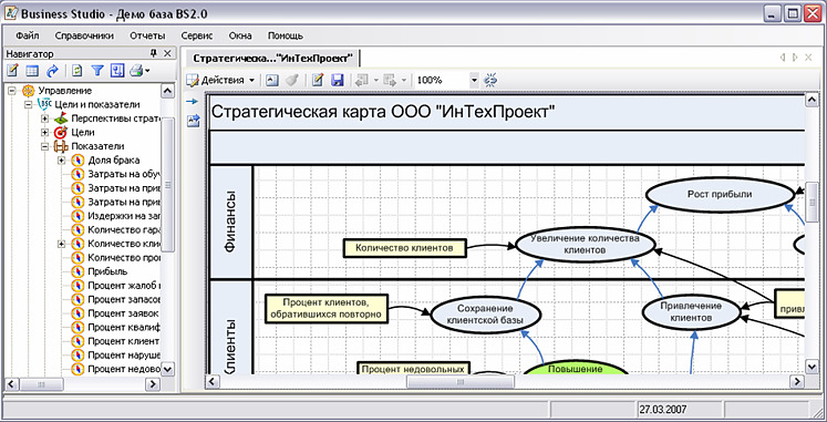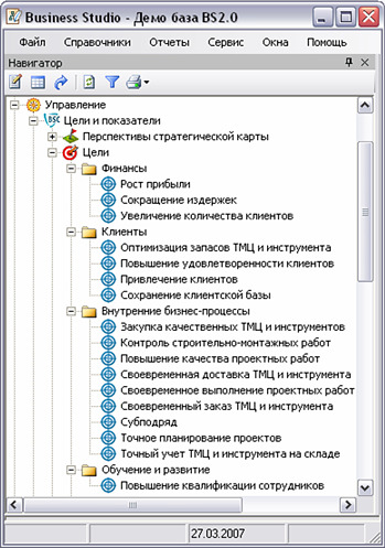 Рассмотрим более подробно методологию разработки и внедрения сбалансированной системы показателей. Для иллюстрации основных этапов построения Balanced ScoreCard будем использовать программный продукт Business Studio 2.0.