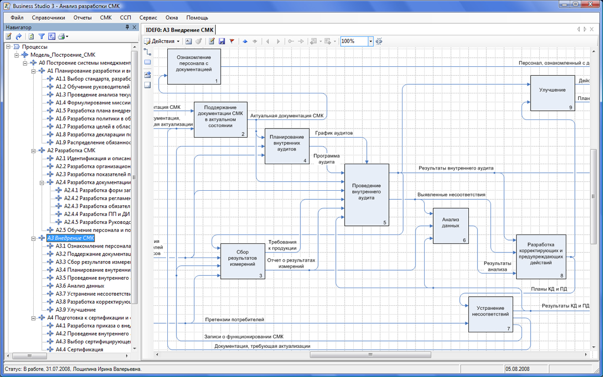 Сама деятельность по разработке и внедрению системы менеджмента качества была смоделирована в виде процесса с помощью