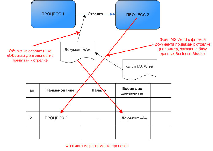 Рис. 5. Смысл привязки документов к стрелкам в Business Studio