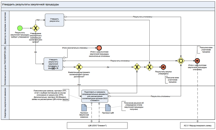 Рис. 2. Фрагмент модели сервиса Закупок в нотации BPMN 2.0