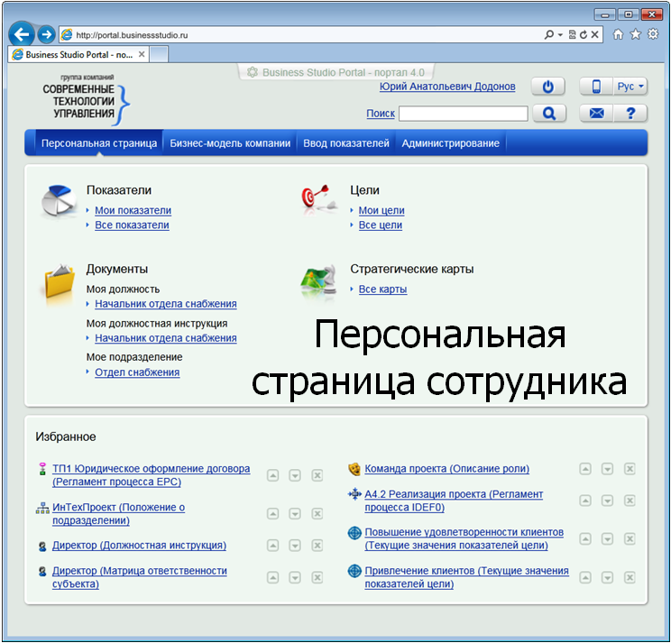 Рис. 2. Персональная страница пользователя Бизнес-портала
