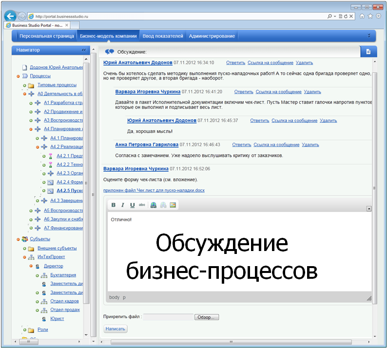 Рис. 3. Обсуждение бизнес-процессов сотрудниками на Бизнес-портале