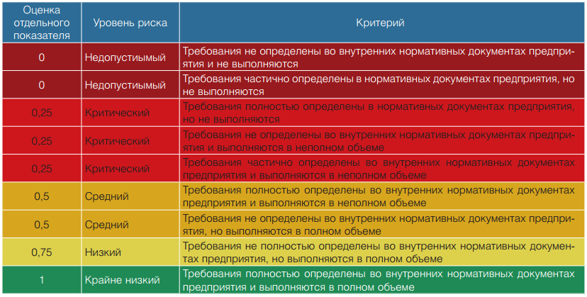 Таблица 1. Критерии оценки регламентирования и выполнения требований контроля