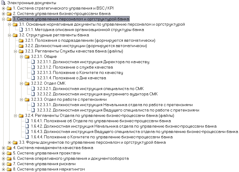 Рис. 3. Модель библиотеки документов банка (фрагмент)