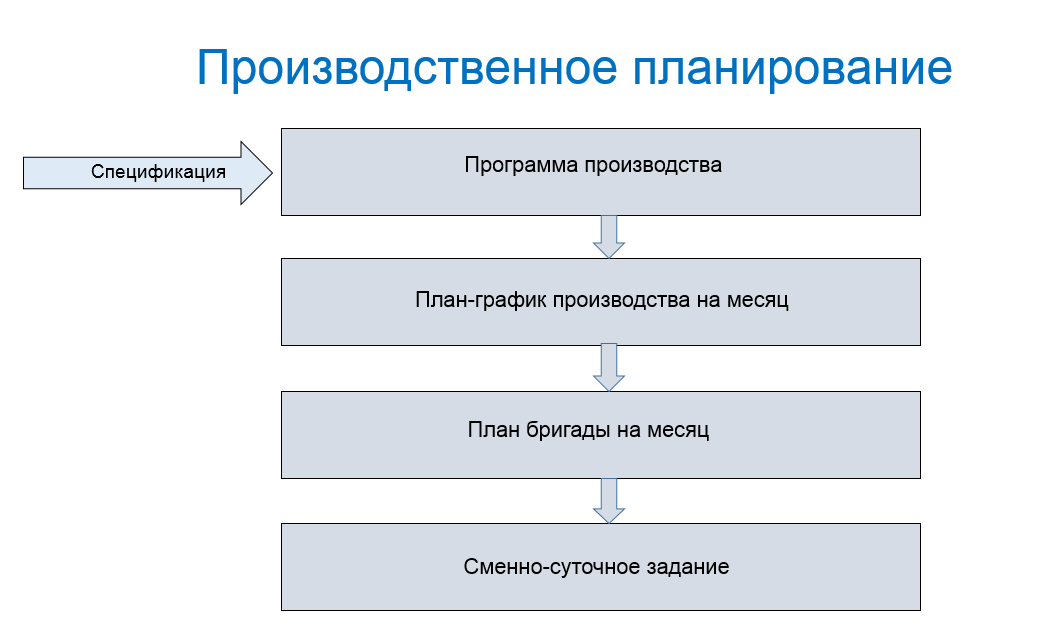 Из базовой модели отдел производственного планирования завода создает планы на месяц с разбивкой по цехам и бригадам. Начальники цехов, в свою очередь, формируют