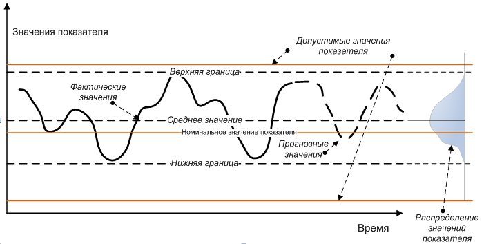 На Рис. 1. показан график изменения одного из показателей процесса, по которым осуществляется управление. Эффективно управлять процессами без адекватной системы показателей невозможно. Ни регламентация, ни автоматизация не заменят квалифицированную, профессиональную управленческую деятельность руководителя по мониторингу процессов, анализу отклонений и принятию управленческих решений.