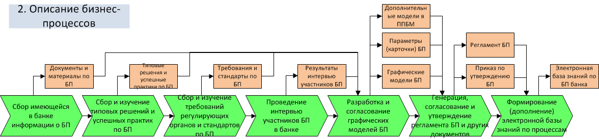 - Сбор имеющейся в банке информации о БП. Если БП описывается не «с нуля», то собираются документы и материалы по БП, которые уже есть в банке;