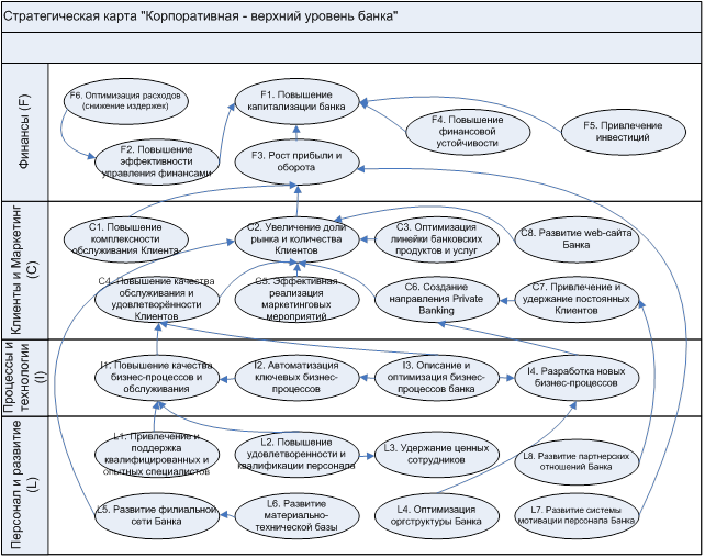 Рис. 5. Стратегическая карта банка (верхний уровень)