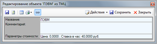 Пример описания параметра стоимости для объекта «ПЭВМ» из раздела ТМЦ показан на рис. 6 и 7.