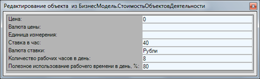 Использование данных справочников позволило не только классифицировать все объекты, но и занести дополнительную информацию о них, необходимую для проведения ФСА (например, такие параметры, как «ставка в час», «количество рабочих часов в день»