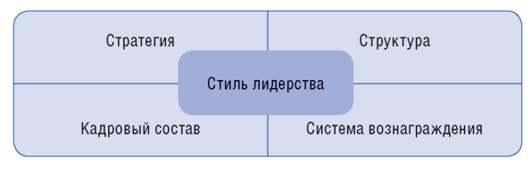 В решении проблем организации и ее продвижении к «Расцвету» И. Адизес выделяет основные области ответственности руководителей: стиль лидерства, стратегию, структуру, кадровый состав, систему вознаграждения. Для удобства анализа полученной в ходе интервью информации сгруппируем вопросы в пять блоков, как это представлено на рисунке 3.