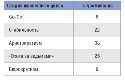 Отметим, что мы рассматриваем данную модель начиная со стадии «Стабильность», поскольку именно с этого этапа компания переходит к зрелости. Таким образом, собрав необходимую информацию и заполнив матрицу, мы получили предварительное заключение, что диагностируемая компания находится на стадии «Охота за ведьмами».