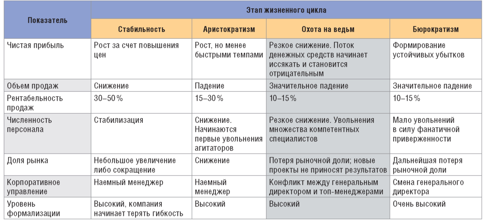 цикла — сочетание черт, присущих компании в данный момент времени, изменяющееся с переходом на другой этап под влиянием разного рода переменных.