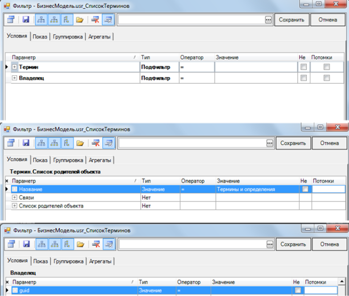 Рисунок 27. Настройка основного условия фильтра для вывода только терминов
