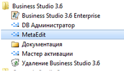 Meta Edit — утилита, позволяющая создавать пользовательские параметры в базе данных Business Studio. Запускается Meta Edit из раздела Business Studio меню «Все программы» (Рисунок 5).