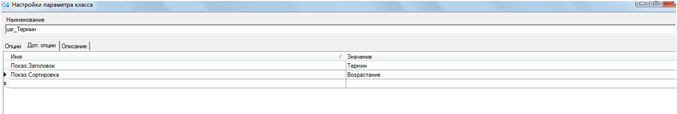 Рисунок 12. Раздел «Доп. опции» параметра «Термин»