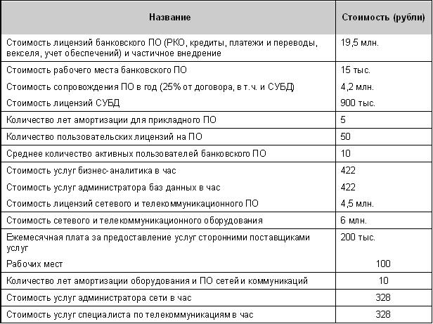 Стоимость внутренних услуг, приведенная выше, рассчитана без использования данных банка, на основании среднерыночных цен и с учетом усредненной