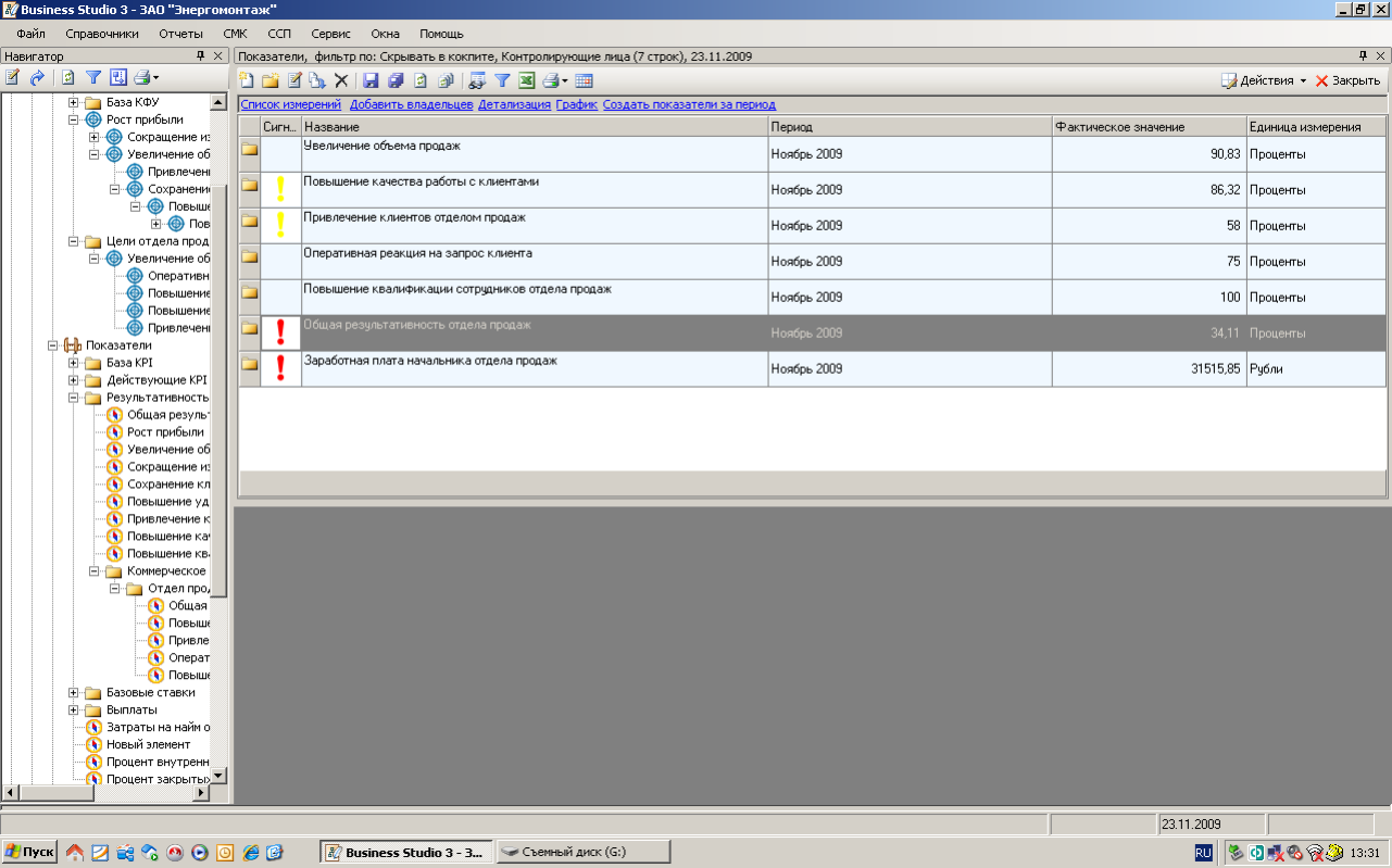 | Привлечение клиентов отделом продаж | Привлечение клиентов | % | 100 | ноя.09 | 100 | 58 | |