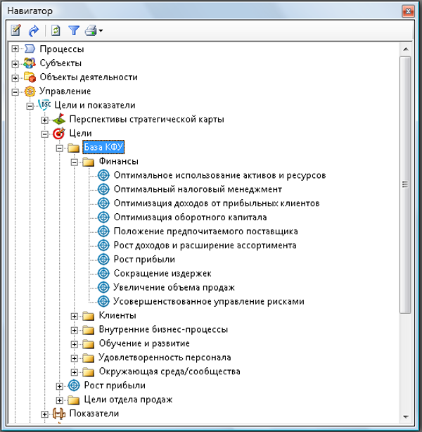 Рисунок 4. Пример ведения базы КФУ в Business Studio 3