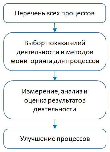 - организация должна определять процессы, необходимые для СМК, а также определять и применять критерии и методы (включая соответствующие показатели результатов деятельности), необходимые для обеспечения результативного функционирования этих процессов и управления ими [1];