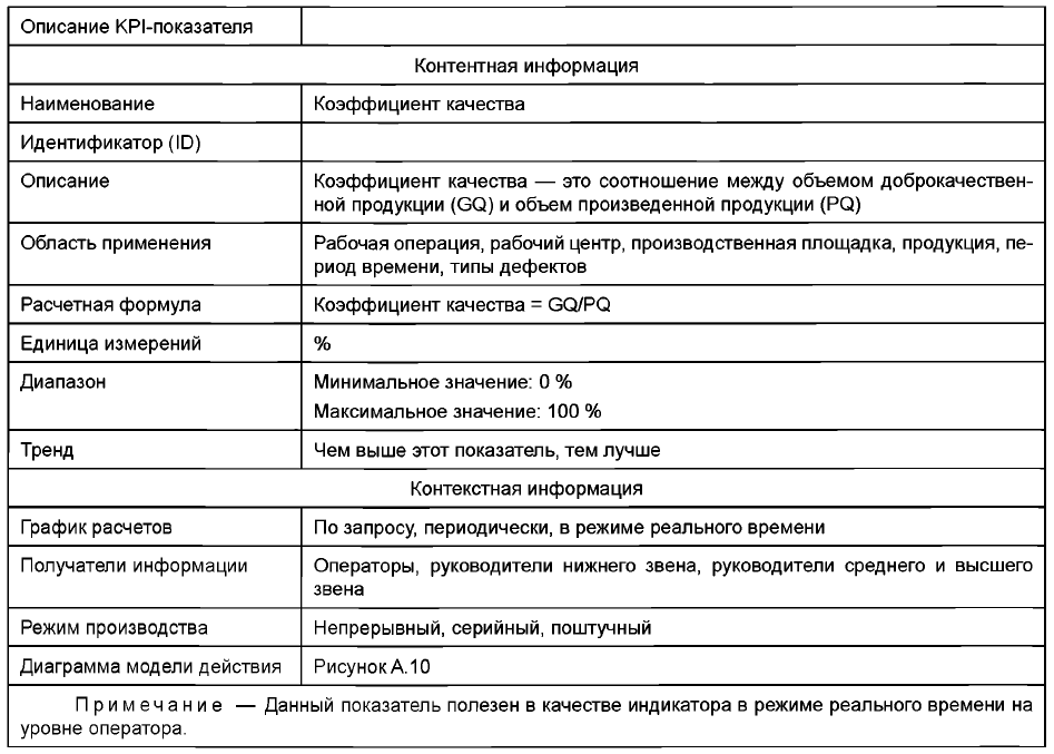 Общий подход по определению и описанию показателей сформулирован в стандарте по системам промышленной автоматизации и интеграции [9], при этом ключевые технико-экономические показатели характеризуются контентной и контекстной информацией.
