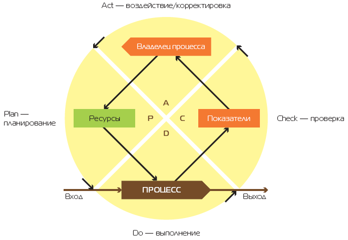 Для обеспечения заданной результативности и эффективности процесса им необходимо управлять. Управление процессом реализуется через цикл PDCA (Plan-