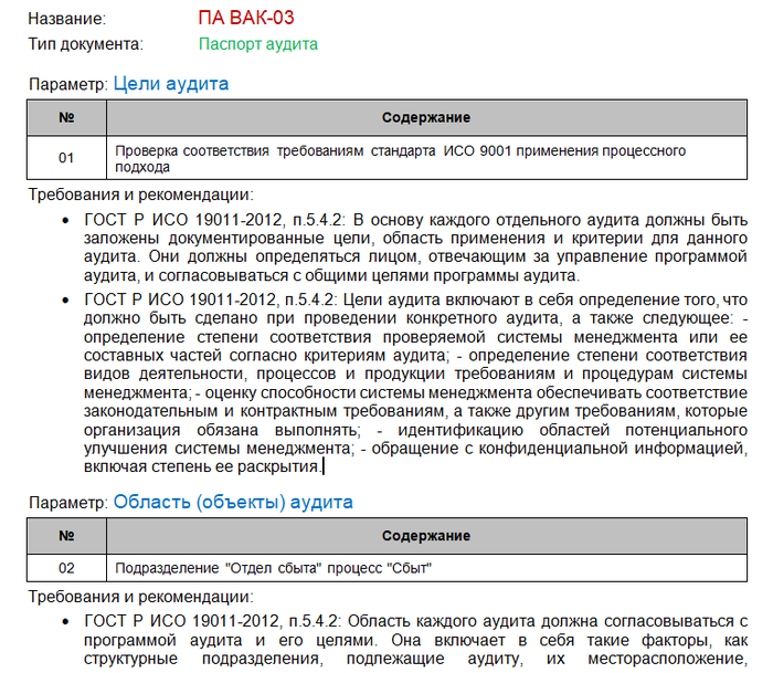 - ГОСТ Р ИСО 19011–2012: «Руководящие указания по аудиту систем менеджмента».