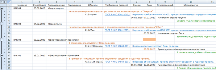Рис. 12. Лист «Несоответствия» отчета по аудитам