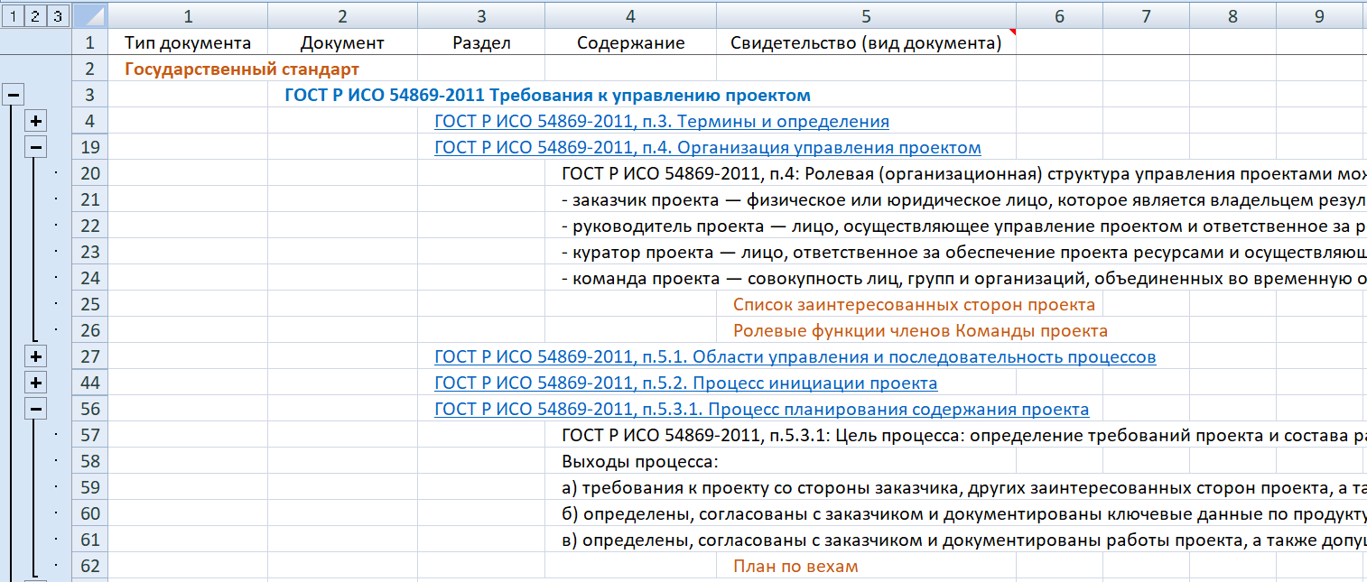 Лист «ГОСТы» представляет собой библиотеку требований стандартов и содержит следующие сведения (рис. 14):