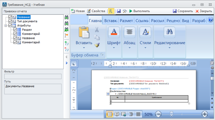 Для унификацированного представления содержания (шаблона) документа «Паспорт аудита» можно использовать стандартные возможности системы «Business Studio» по настройке и формированию пользовательских отчетов [18] (рис. 9).
