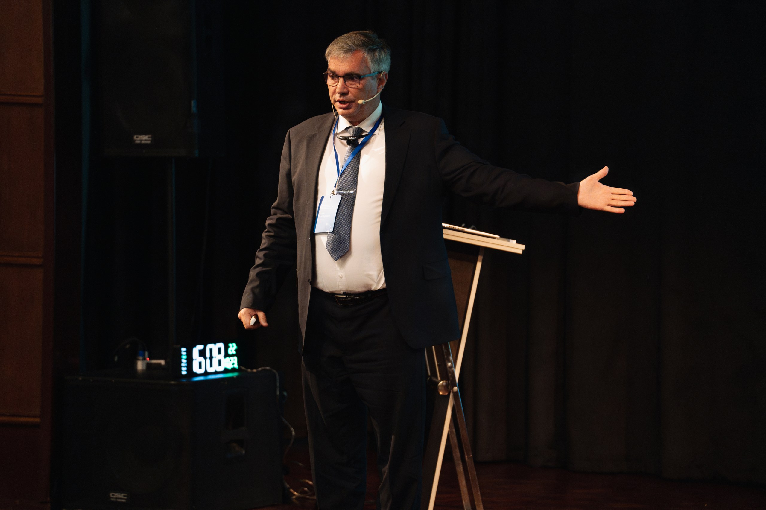 Владимир Репин уделил внимание методологическому подходу проектирования процессов в нотации BPMN при внедрении «1С:Документооборот». В конце выступления спикер разыграл среди гостей бесплатное участие в своем авторском тренинге по Business Studio. Счастливчика определил бумажный самолет, который полетел со сцены прямо в аудиторию.