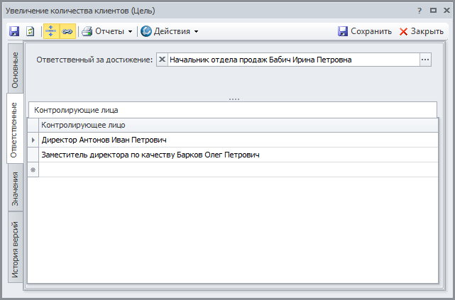 , которая находится справа от параметра "Ответственный за достижение" или появляется справа в параметре "Контролирующее лицо", если установить курсор в этот параметр в строке списка на вкладке Контролирующие лица.
