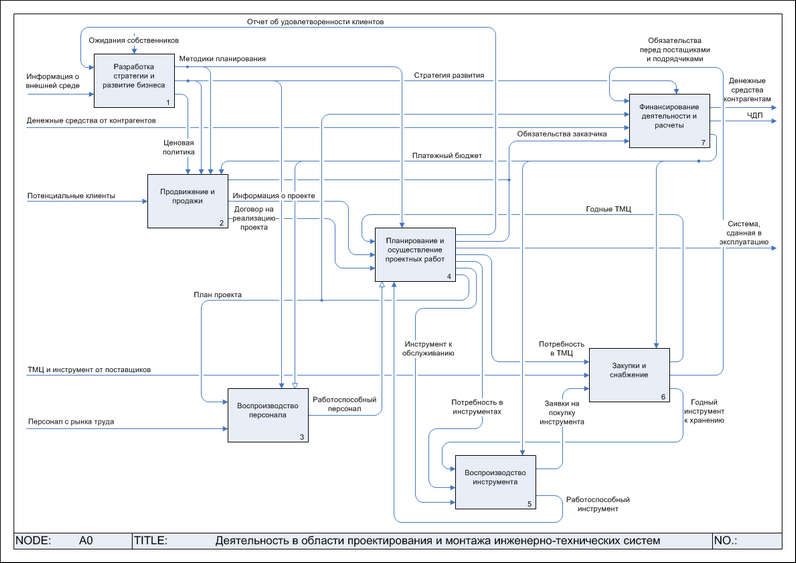 IDEF0 - нотация графического моделирования, используемая для создания функциональной модели, отображающей структуру и функции системы, а также потоки информации и материальных объектов, связывающих эти функции. Стандарт IDEF0 (Integration Definition for Function Modeling) утвержден в США в 1993 как Федеральный стандарт обработки информации. В России находится в статусе руководящего документа с 2000 года и в настоящее время в качестве стандарта не утвержден. Тем не менее методология IDEF0 является одним из популярных подходов для описания бизнес-процессов. К ее особенностям можно отнести: