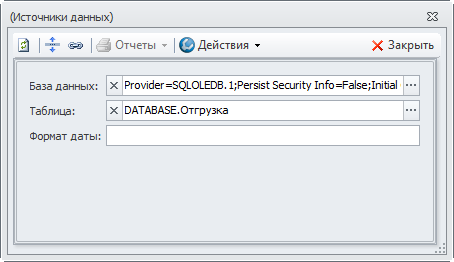 Параметр "Источник данных" определяет базу данных, таблицу и параметры подключения к базе данных.