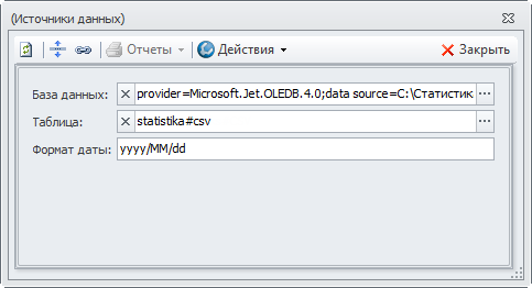 После заполнения параметров на указанных вкладках нажмите на кнопку OK. Затем в параметре "Таблица" укажите файл, из которого будет загружаться статистика, и при необходимости укажите формат даты (Рис. 6).