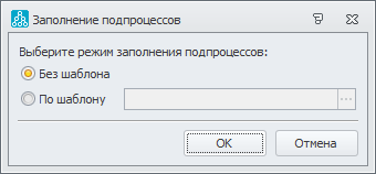 Для процесса в качестве шагов могут быть заданы его подпроцессы. Для этого на вкладке "Шаги процесса" нажмите на гиперссылку Автозаполнение списка шагов (см. Рис. 2). Будет открыто окно Заполнение подпроцессов (Рис. 7), в котором будет предложено выбрать режим заполнения параметров загрузки контрольных точек.