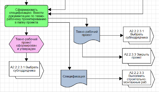 Интерфейс процесса используется для отображения связи между диаграммами EPC для наглядности отображения информации о том, откуда приходит объект, событие и куда переходит (рис. 4).