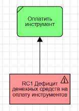 На диаграмме EPC можно отобразить риски. Для угрозы и возможности предусмотрены свои фигуры. Символ риска не представлен на Палитре элементов, но риск может быть добавлен на диаграмму из справочника. Для связи риска с функцией EPC предназначен класс связи "Влияние риска" (рис. 6). В этом случае функция EPC является объектом риска.