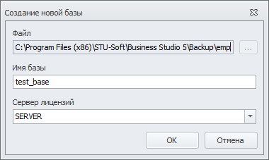 После выбора сервера лицензий и ввода имени базы нажмите на кнопку ОК. Окно Создание новой базы будет закрыто.