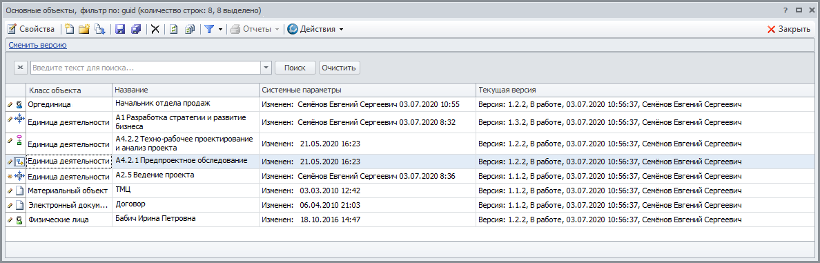 Функционал "Версии объектов" предназначен для ведения истории изменений объектов модели бизнес-архитектуры.