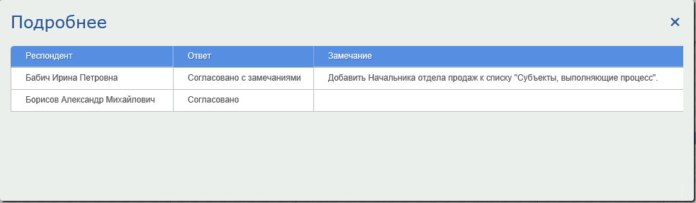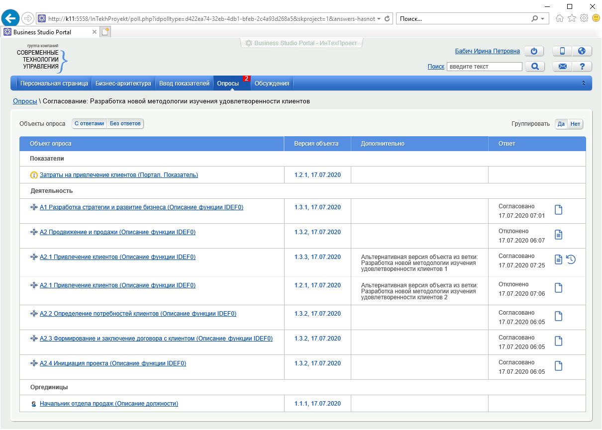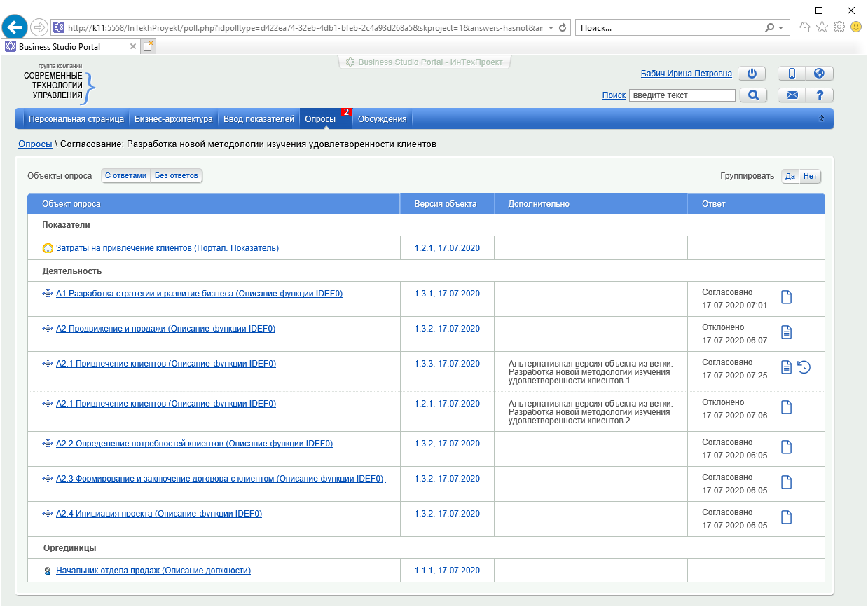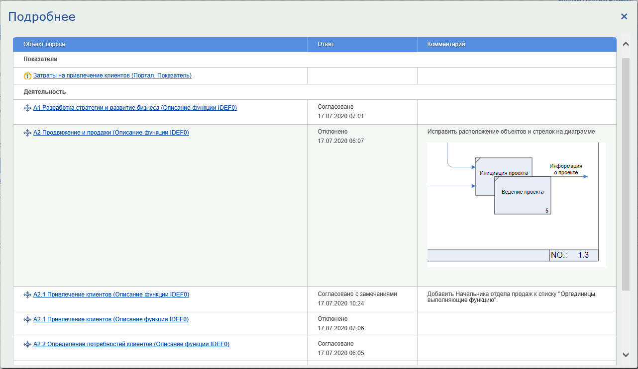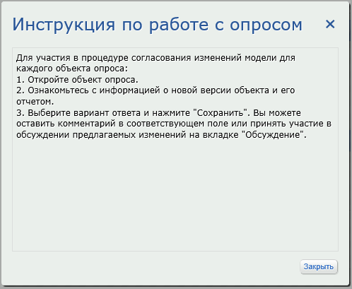 | Согласование | Тип опроса, предназначенный для согласования изменений бизнес-архитектуры заинтересованными лицами. |