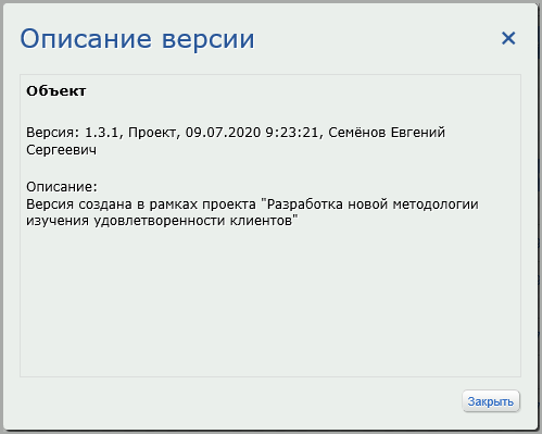Нажатие на ссылку с версией объекта опроса открывает Окно описания версии объекта (см. Рисунок 10)