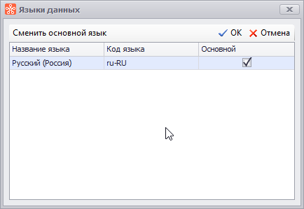 Окно редактирования языков при использовании сервера лицензий с лицензией Business Studio Professional или Business Studio Enterprise (доступна только смена основного языка базы данных) приведено на рисунке 2.