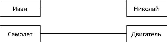 Как видно из примера, только лишь перечисление пары объектов не дает никакой информации о сути связи. Чтобы понять, что означает связь, нужно, по аналогии с обычным объектом, понять к какому классу связей она принадлежит.